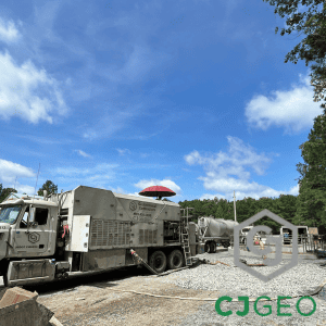 After acceptance of the grouting program by the EOR, CJGeo mobilized to the site and installed roughly 168 cubic yards of 38lb/cuft CJFill-Standard cellular grout. Confirmation of fill on this Virginia annular grout project was uniform grout venting from the 12 o’clock port at the far end from placement. Peak pumping pressure was less than 5psi, while placing at approximately 100 cubic yards per hour.