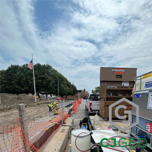 A CJGeo chemical grouting crew placed nearly 1300 gallons of single component polyurethane resin on this WWTP curtain grouting project. The work took about three weeks start to finish. The general contractor had removed the backfill and installed a new waterproofing membrane over the tunnel lid and extending down the walls about one foot on each side.